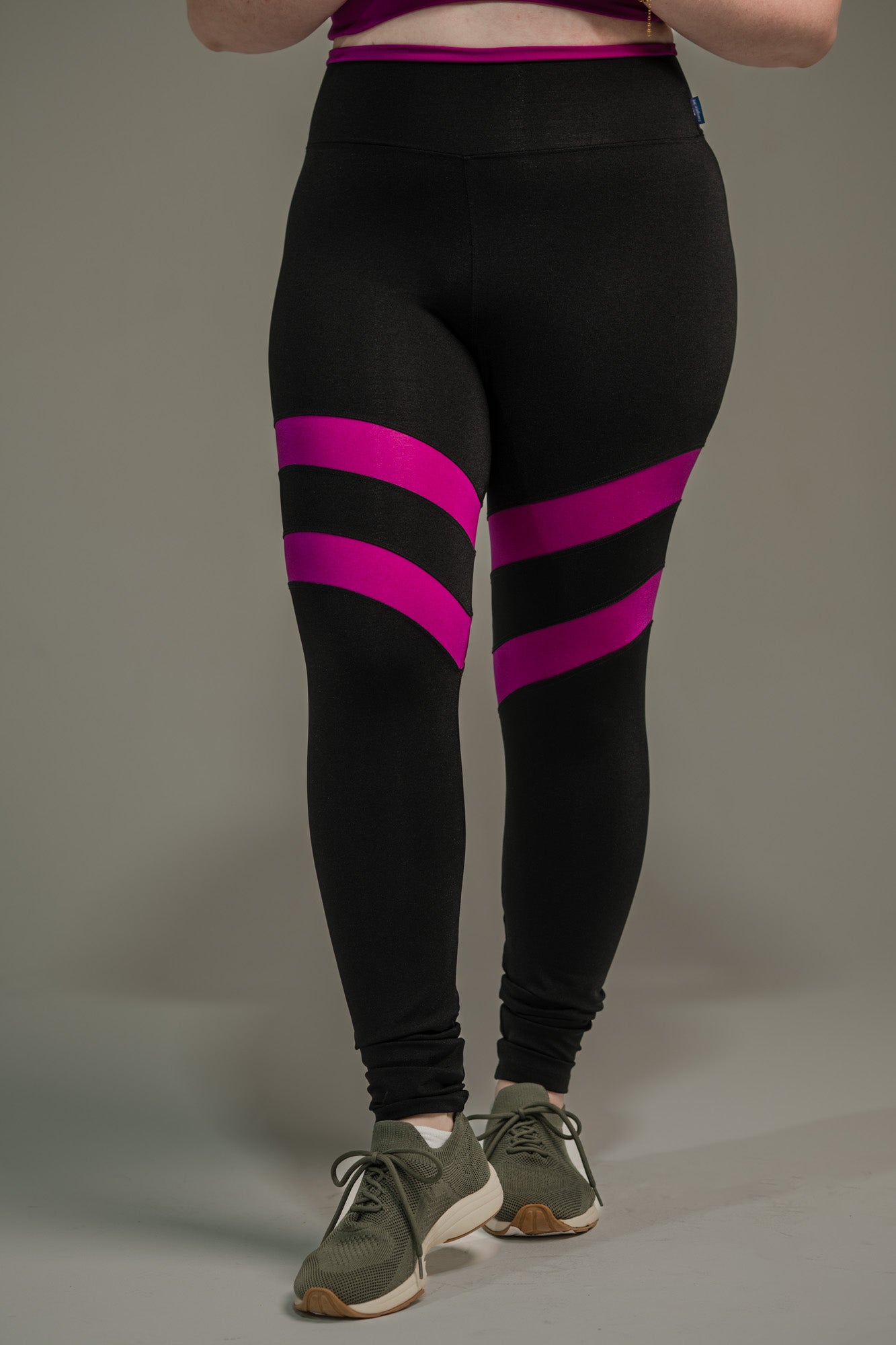 Calça Legging com listras coloridas, feita em poliamida 320mg.
